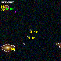 Object #2221 x,y = (3444, 2341) RA, Dec = (00:25:26.064, -12:23:03.84) = (6.35860, -12.38440) BPZ = 4.125 [0.603--4.467] type = 9.40 (SB2_B10 - SB3_B10) chisq2 = 0.48 ODDS = 0.61 z_cluster = 0.586