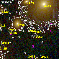 Object #2342 x,y = (1936, 2257) RA, Dec = (00:25:32.232, -12:23:08.88) = (6.38430, -12.38580) BPZ = 0.060 [0.038--3.442] type = 10.30 (SB3_B10 - SB11_A_0_l) chisq2 = 0.34 ODDS = 0.11 z_cluster = 0.586