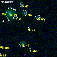 Object #2393 x,y = (4357, 2223) RA, Dec = (00:25:22.320, -12:23:11.04) = (6.34300, -12.38640) BPZ = 0.230 [0.140--3.950] type = 6.60 (Scd_B10 - Sbc_B10) chisq2 = 0.00 ODDS = 0.05 z_cluster = 0.586
