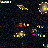 Object #2397 x,y = (3555, 2222) RA, Dec = (00:25:25.608, -12:23:11.04) = (6.35670, -12.38640) BPZ = 0.316 [0.150--4.336] type = 3.00 (Ell5_A_0) chisq2 = 0.22 ODDS = 0.20 z_cluster = 0.586