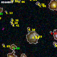 Object #2468 x,y = (2755, 2247) RA, Dec = (00:25:28.872, -12:23:09.60) = (6.37030, -12.38600) BPZ = 4.379 [3.979--4.965] type = 8.70 (SB2_B10 - SB1_B10) chisq2 = 0.15 ODDS = 0.65 z_cluster = 0.586