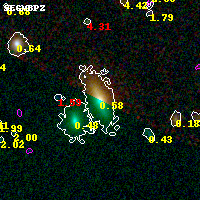 Object #2563 x,y = (1168, 2079) RA, Dec = (00:25:35.376, -12:23:19.68) = (6.39740, -12.38880) BPZ = 0.578 [0.490--0.680] type = 2.40 (Ell6_A_0 - Ell5_A_0) chisq2 = 0.00 ODDS = 0.76 z_cluster = 0.586