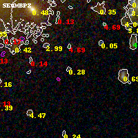 Object #2750 x,y = (1856, 2006) RA, Dec = (00:25:32.568, -12:23:24.00) = (6.38570, -12.39000) BPZ = 0.279 [0.116--3.878] type = 10.00 (SB3_B10) chisq2 = 0.07 ODDS = 0.12 z_cluster = 0.586