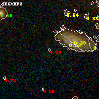Object #2849 x,y = (1611, 1961) RA, Dec = (00:25:33.552, -12:23:26.52) = (6.38980, -12.39070) BPZ = 4.687 [4.451--4.811] type = 11.00 (SB11_A_0_l) chisq2 = 14.44 ODDS = 0.97 z_cluster = 0.586