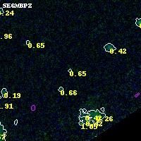 Object #3565 x,y = (3601, 1253) RA, Dec = (00:25:25.416, -12:24:09.36) = (6.35590, -12.40260) BPZ = 0.647 [0.247--4.660] type = 3.00 (Ell5_A_0) chisq2 = 0.37 ODDS = 0.08 z_cluster = 0.586