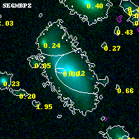 Object #3666 x,y = (2353, 1062) RA, Dec = (00:25:30.528, -12:24:20.52) = (6.37720, -12.40570) BPZ = 0.120 [0.036--0.262] type = 2.70 (Ell5_A_0 - Ell6_A_0) chisq2 = 0.00 ODDS = 0.71 z_cluster = 0.586