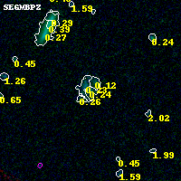 Object #416 x,y = (2478, 3862) RA, Dec = (00:25:30.000, -12:21:32.76) = (6.37500, -12.35910) BPZ = 0.241 [0.142--3.421] type = 8.10 (SB1_B10 - SB2_B10) chisq2 = 0.00 ODDS = 0.05 z_cluster = 0.586