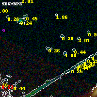 Object #715 x,y = (3020, 3474) RA, Dec = (00:25:27.792, -12:21:55.80) = (6.36580, -12.36550) BPZ = 0.257 [0.156--3.578] type = 8.90 (SB2_B10 - SB1_B10) chisq2 = 0.00 ODDS = 0.04 z_cluster = 0.586