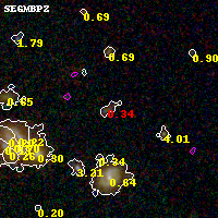 Object #818 x,y = (1933, 3448) RA, Dec = (00:25:32.232, -12:21:57.60) = (6.38430, -12.36600) BPZ = 0.339 [0.105--3.519] type = 8.10 (SB1_B10 - SB2_B10) chisq2 = 1.33 ODDS = 0.16 z_cluster = 0.586