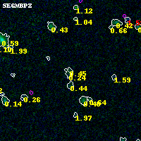 Object #935 x,y = (3827, 3285) RA, Dec = (00:25:24.480, -12:22:07.32) = (6.35200, -12.36870) BPZ = 0.446 [0.128--3.816] type = 8.40 (SB1_B10 - SB2_B10) chisq2 = 0.00 ODDS = 0.05 z_cluster = 0.586