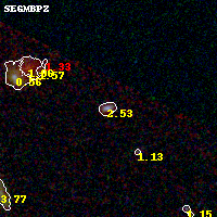 Object #17 x,y = (2397, 3736) RA, Dec = (00:25:30.336, -12:21:40.32) = (6.37640, -12.36120) BPZ = 2.533 [2.148--2.915] type = 9.30 (SB2_B10 - SB3_B10) chisq2 = 0.05 ODDS = 0.57 z_cluster = 0.586