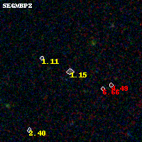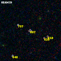 Object #807 x,y = (3420, 2032) RA, Dec = (00:25:26.160, -12:23:22.56) = (6.35900, -12.38960) BPZ = 1.152 [0.129--3.307] type = 10.00 (SB3_B10) chisq2 = 0.16 ODDS = 0.16 z_cluster = 0.586