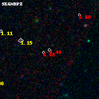 Object #818 x,y = (3478, 2013) RA, Dec = (00:25:25.920, -12:23:23.64) = (6.35800, -12.38990) BPZ = 4.491 [2.186--12.354] type = 4.00 (Ell4_A_0) chisq2 = 4.50 ODDS = 0.16 z_cluster = 0.586