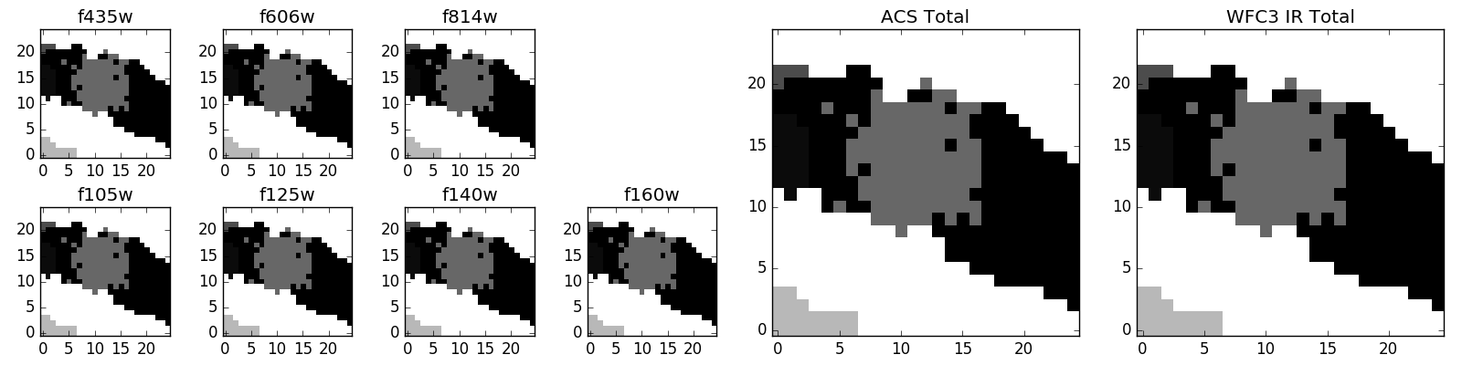 Black segments are analyzed here. Roll mouse over color images to view segments. Best viewed in a wide browser window (1200 pixels or more). Download SED & P(z) plots to view larger versions.