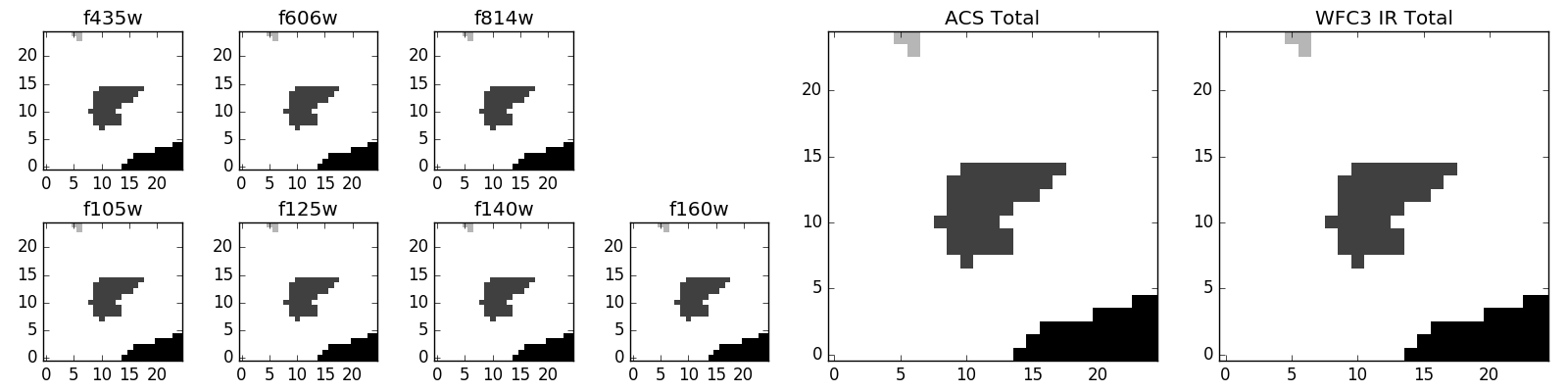 Black segments are analyzed here. Roll mouse over color images to view segments. Best viewed in a wide browser window (1200 pixels or more). Download SED & P(z) plots to view larger versions.