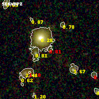 Object #1007   x,y = (1175, 571)   RA, Dec = (02:00:15.168, -8:50:57.48) = (30.06320, -8.84930)   BPZ = 0.815 [0.410--6.463]   type = 6.40 (Sbc_B10 - Scd_B10)   stellarity = 0.00   chisq2 = 1.26   ODDS = 0.10   z_cluster = 0.405