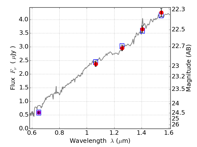 Object #1054   x,y = (761, 516)   RA, Dec = (02:00:16.848, -8:51:00.72) = (30.07020, -8.85020)   BPZ = 0.551 [0.432--1.400]   type = 6.00 (Sbc_B10)   stellarity = 0.03   chisq2 = 0.12   ODDS = 0.45   z_cluster = 0.405