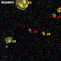 Object #128   x,y = (1536, 2331)   RA, Dec = (02:00:13.704, -8:49:12.00) = (30.05710, -8.82000)   BPZ = 0.996 [0.509--7.068]   type = 6.00 (Sbc_B10)   stellarity = 0.63   chisq2 = 3.05   ODDS = 0.07   z_cluster = 0.405