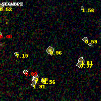 Object #245   x,y = (610, 2115)   RA, Dec = (02:00:17.448, -8:49:24.96) = (30.07270, -8.82360)   BPZ = 4.960 [4.841--5.300]   type = 9.00 (SB2_B10)   stellarity = 0.98   chisq2 = 0.21   ODDS = 0.91   z_cluster = 0.405
