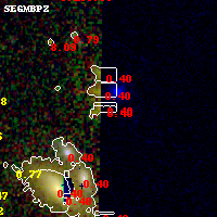 Object #369   x,y = (2635, 1873)   RA, Dec = (02:00:09.240, -8:49:39.36) = (30.03850, -8.82760)   BPZ = 0.403 [0.051--0.865]   type = 6.00 (Sbc_B10)   stellarity = 0.13   chisq2 = 990.00   ODDS = 0.21   z_cluster = 0.405