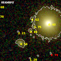Object #974   x,y = (2243, 658)   RA, Dec = (02:00:10.824, -8:50:52.08) = (30.04510, -8.84780)   BPZ = 0.881 [0.220--4.243]   type = 7.70 (SB1_B10 - Scd_B10)   stellarity = 0.02   chisq2 = 0.39   ODDS = 0.15   z_cluster = 0.405