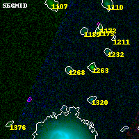 Object #1268 x,y = (2004, 4032) RA, Dec = (02:57:13.536, -23:24:54.72) = (44.30640, -23.41520) BPZ = 0.247 [0.147--3.968] type = 3.00 (Ell5_A_0) chisq2 = 0.04 ODDS = 0.08 z_cluster = 0.505