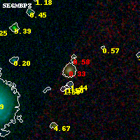 Object #1354 x,y = (2116, 3974) RA, Dec = (02:57:13.056, -23:24:58.32) = (44.30440, -23.41620) BPZ = 0.325 [0.280--4.202] type = 3.60 (Ell4_A_0 - Ell5_A_0) chisq2 = 1.33 ODDS = 0.35 z_cluster = 0.505