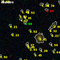 Object #1724 x,y = (2845, 3706) RA, Dec = (02:57:09.888, -23:25:14.16) = (44.29120, -23.42060) BPZ = 0.522 [0.143--4.054] type = 9.90 (SB3_B10 - SB2_B10) chisq2 = 0.20 ODDS = 0.12 z_cluster = 0.505