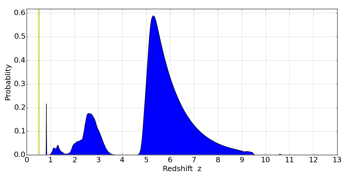 Best viewed in a wide browser window (1200 pixels or more). Download SED & P(z) plots to view larger versions.