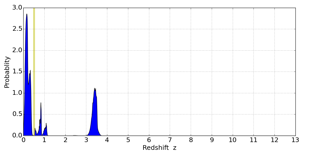 Best viewed in a wide browser window (1200 pixels or more). Download SED & P(z) plots to view larger versions.