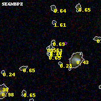 Object #2375 x,y = (2327, 3297) RA, Dec = (02:57:12.144, -23:25:39.00) = (44.30060, -23.42750) BPZ = 0.303 [0.073--3.528] type = 9.10 (SB2_B10 - SB3_B10) chisq2 = 0.39 ODDS = 0.13 z_cluster = 0.505
