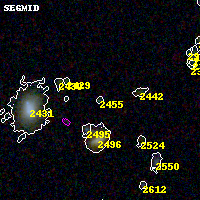 Object #2455 x,y = (2234, 3255) RA, Dec = (02:57:12.552, -23:25:41.52) = (44.30230, -23.42820) BPZ = 0.241 [0.125--4.055] type = 10.00 (SB3_B10) chisq2 = 0.18 ODDS = 0.13 z_cluster = 0.505