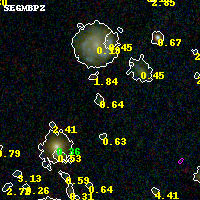 Object #2472 x,y = (3417, 3244) RA, Dec = (02:57:07.392, -23:25:42.24) = (44.28080, -23.42840) BPZ = 0.641 [0.449--4.297] type = 8.60 (SB2_B10 - SB1_B10) chisq2 = 0.27 ODDS = 0.21 z_cluster = 0.505