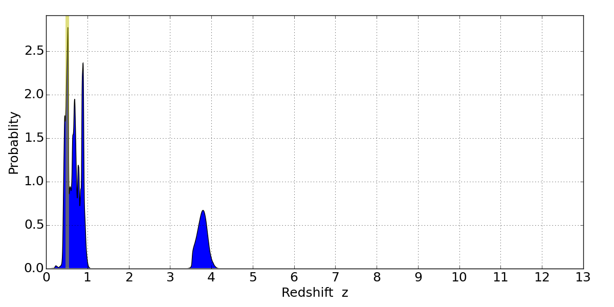 Best viewed in a wide browser window (1200 pixels or more). Download SED & P(z) plots to view larger versions.
