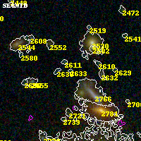Object #2633 x,y = (3343, 3158) RA, Dec = (02:57:07.704, -23:25:47.28) = (44.28210, -23.42980) BPZ = 0.260 [0.121--4.274] type = 11.00 (SB11_A_0_l) chisq2 = 0.13 ODDS = 0.07 z_cluster = 0.505