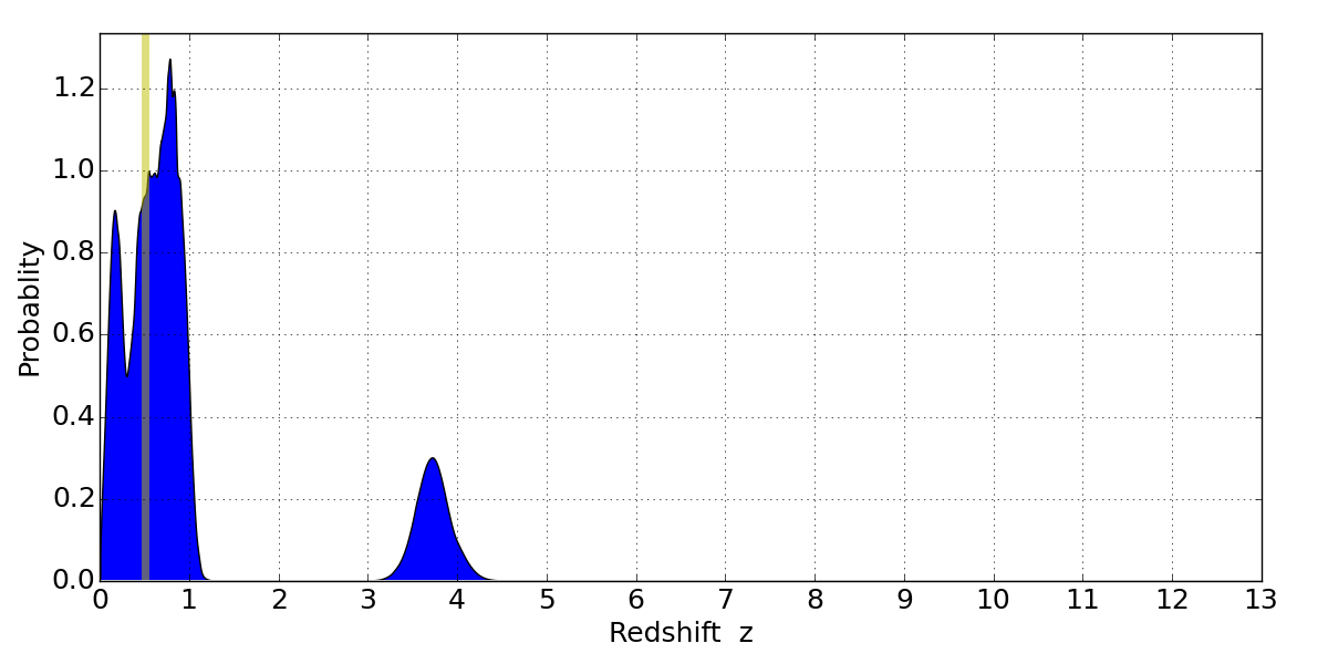 Best viewed in a wide browser window (1200 pixels or more). Download SED & P(z) plots to view larger versions.