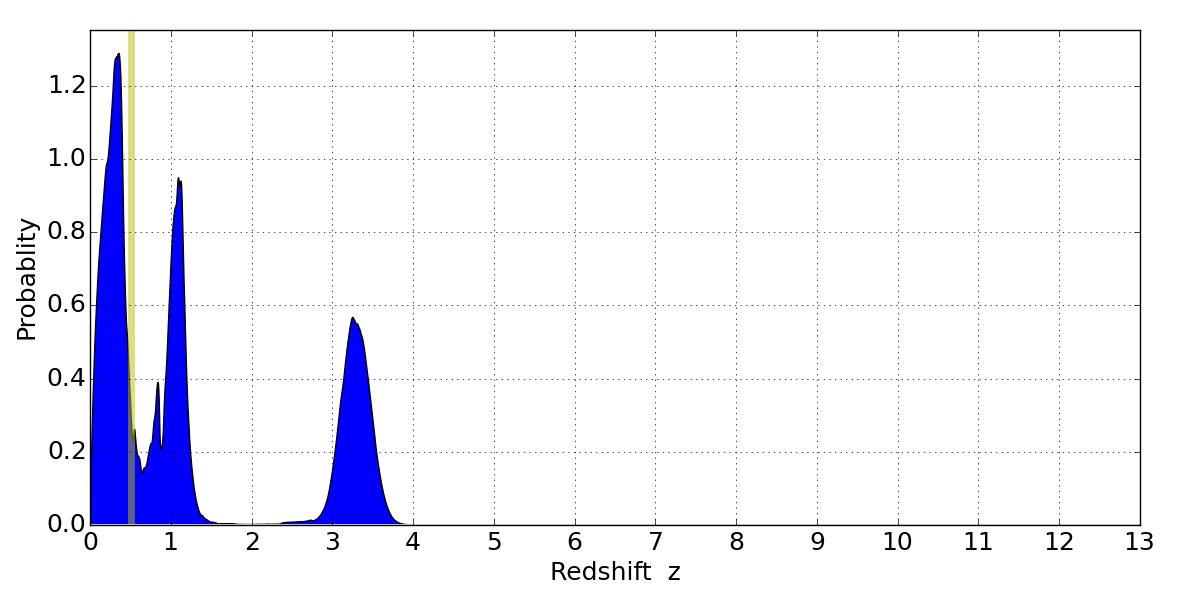 Best viewed in a wide browser window (1200 pixels or more). Download SED & P(z) plots to view larger versions.