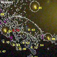 Object #3022 x,y = (2930, 2822) RA, Dec = (02:57:09.504, -23:26:07.44) = (44.28960, -23.43540) BPZ = 0.427 [0.079--2.540] type = 8.90 (SB2_B10 - SB1_B10) chisq2 = 0.00 ODDS = 0.14 z_cluster = 0.505