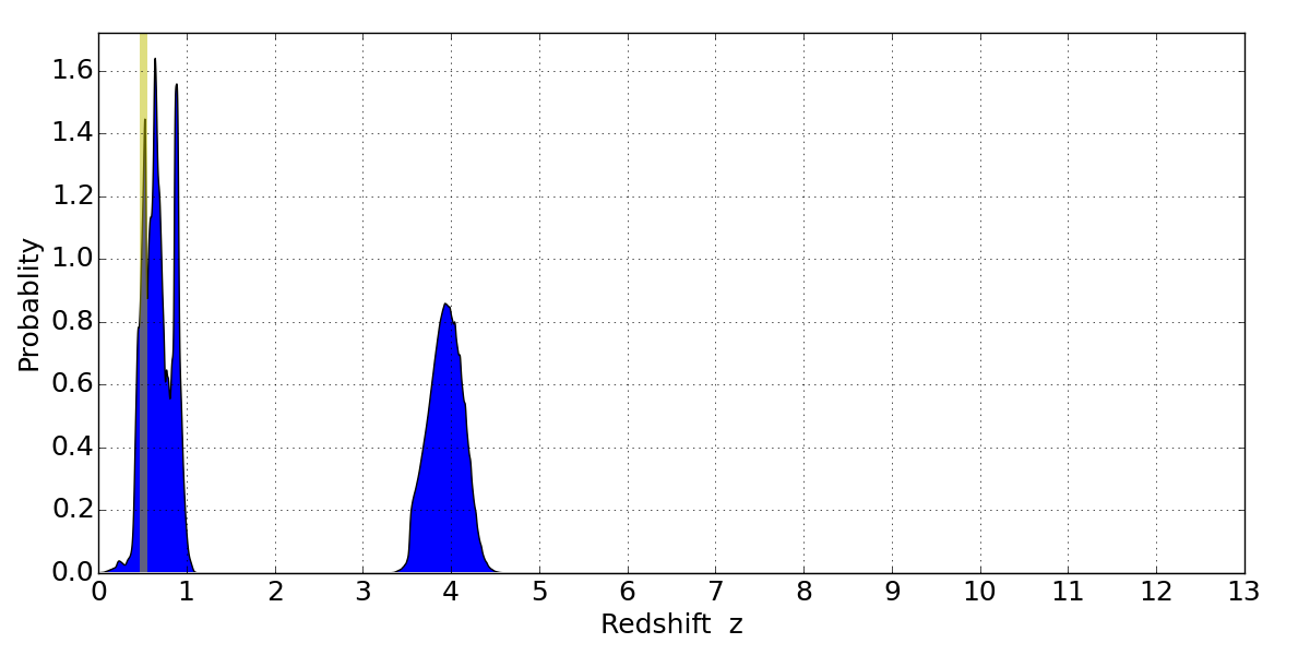 Best viewed in a wide browser window (1200 pixels or more). Download SED & P(z) plots to view larger versions.