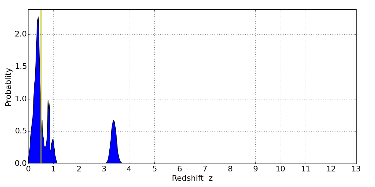 Best viewed in a wide browser window (1200 pixels or more). Download SED & P(z) plots to view larger versions.