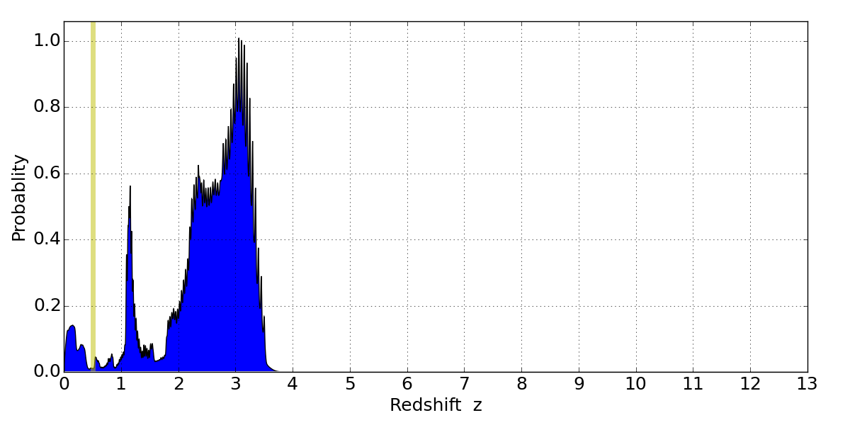 Best viewed in a wide browser window (1200 pixels or more). Download SED & P(z) plots to view larger versions.