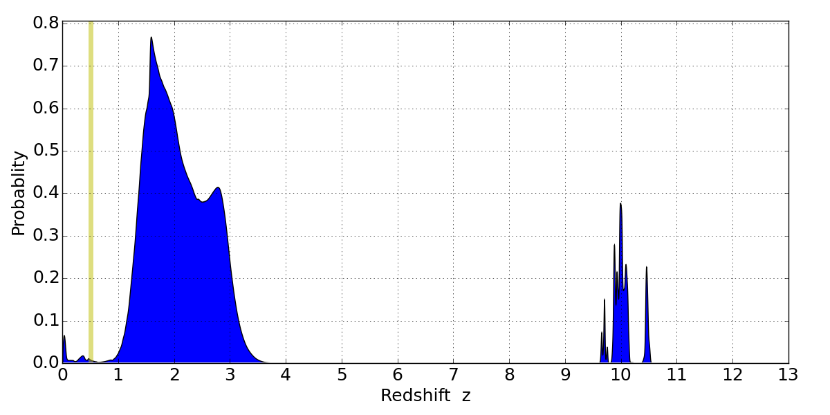 Best viewed in a wide browser window (1200 pixels or more). Download SED & P(z) plots to view larger versions.