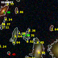 Object #3569 x,y = (3750, 2576) RA, Dec = (02:57:05.928, -23:26:22.20) = (44.27470, -23.43950) BPZ = 0.359 [0.128--3.665] type = 10.10 (SB3_B10 - SB11_A_0_l) chisq2 = 0.16 ODDS = 0.07 z_cluster = 0.505