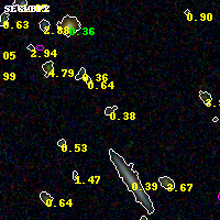 Object #3678 x,y = (1759, 2508) RA, Dec = (02:57:14.616, -23:26:26.16) = (44.31090, -23.44060) BPZ = 0.375 [0.120--3.523] type = 11.00 (SB11_A_0_l) chisq2 = 0.09 ODDS = 0.06 z_cluster = 0.505