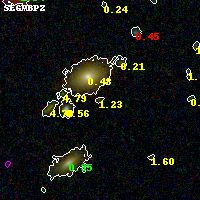 Object #3823 x,y = (3644, 2426) RA, Dec = (02:57:06.408, -23:26:31.20) = (44.27670, -23.44200) BPZ = 1.229 [0.166--3.451] type = 8.50 (SB2_B10 - SB1_B10) chisq2 = 0.28 ODDS = 0.12 z_cluster = 0.505
