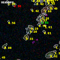 Object #3869 x,y = (3389, 2389) RA, Dec = (02:57:07.512, -23:26:33.36) = (44.28130, -23.44260) BPZ = 0.203 [0.118--3.205] type = 9.60 (SB3_B10 - SB2_B10) chisq2 = 0.00 ODDS = 0.07 z_cluster = 0.505