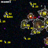 Object #4080 x,y = (2558, 2265) RA, Dec = (02:57:11.136, -23:26:40.92) = (44.29640, -23.44470) BPZ = 0.647 [0.264--4.137] type = 7.60 (SB1_B10 - Scd_B10) chisq2 = 0.42 ODDS = 0.55 z_cluster = 0.505