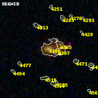 Object #4386 x,y = (3165, 2101) RA, Dec = (02:57:08.496, -23:26:50.64) = (44.28540, -23.44740) BPZ = 0.435 [0.367--1.593] type = 2.70 (Ell5_A_0 - Ell6_A_0) chisq2 = 0.00 ODDS = 0.66 z_cluster = 0.505