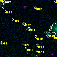 Object #4901 x,y = (1967, 1776) RA, Dec = (02:57:13.704, -23:27:10.08) = (44.30710, -23.45280) BPZ = 0.238 [0.149--3.450] type = 8.30 (SB1_B10 - SB2_B10) chisq2 = 0.00 ODDS = 0.05 z_cluster = 0.505