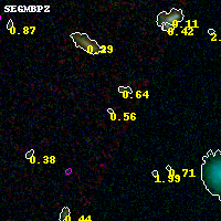 Object #5027 x,y = (3633, 1677) RA, Dec = (02:57:06.456, -23:27:16.20) = (44.27690, -23.45450) BPZ = 0.561 [0.143--4.214] type = 9.90 (SB3_B10 - SB2_B10) chisq2 = 0.07 ODDS = 0.06 z_cluster = 0.505
